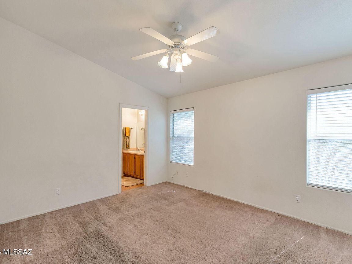 Enjoy mountain & sunset views from this home, Ideally located with easy access to I-10, you're just minutes from golf courses, hiking and cycling trails, dining, and shopping. Inside, you'll find tile flooring throughout the main living areas, with carpet only in the bedrooms. Great room with wood burning fireplace and dining area. Step outside to a covered patio offering unobstructed views perfect for relaxing or entertaining. Low maintenance desert landscaping in both the front & backyard means more time to enjoy your surroundings & less time on upkeep. Primary suite features a bathroom with dual vanities, a garden tub/shower combo & walk-in closet. Bonus room or office w/ window seat makes working from home ideal & comfortable. Guest bedroom & guest bath, 2 car garage, low HOA due