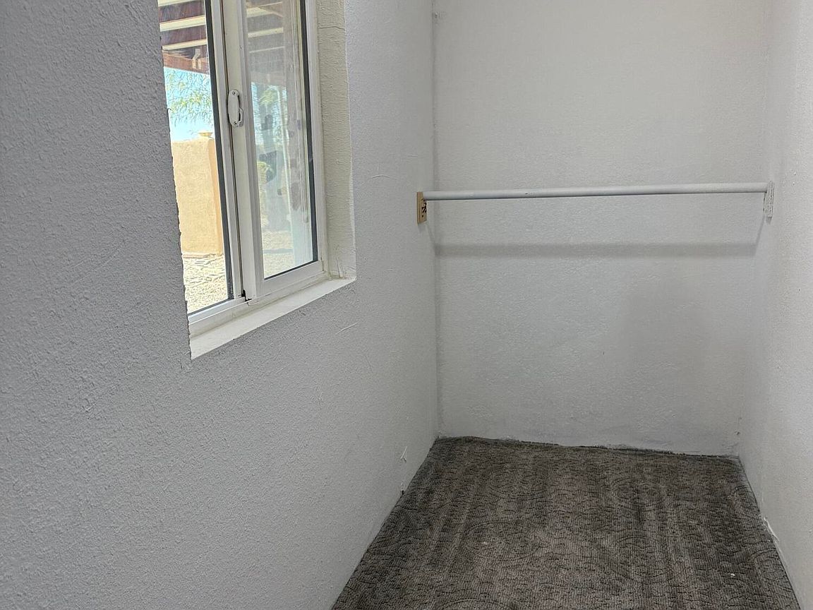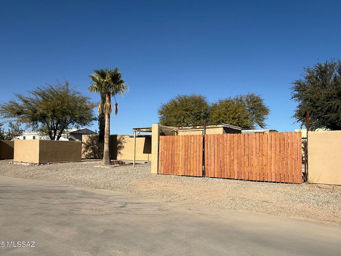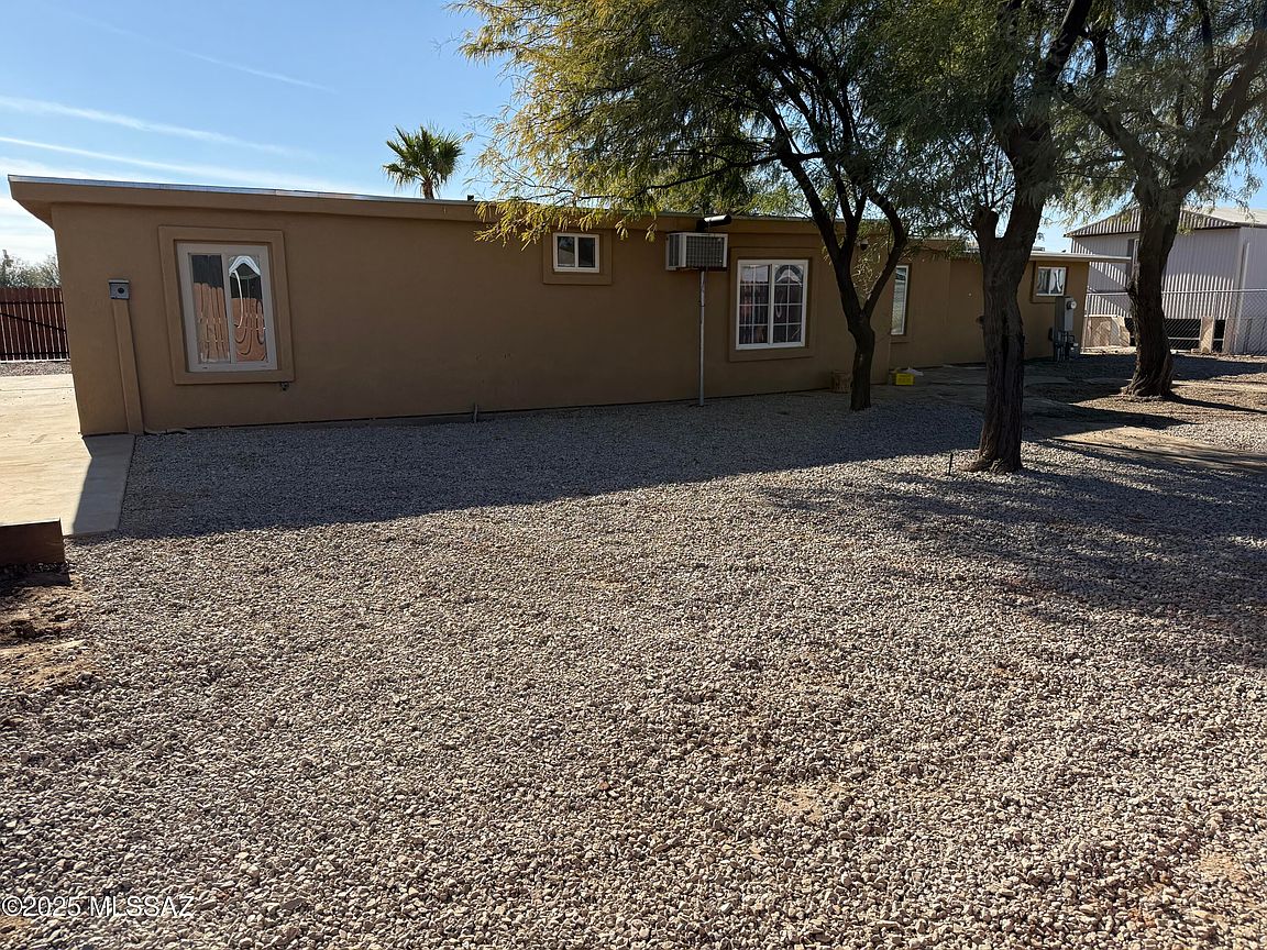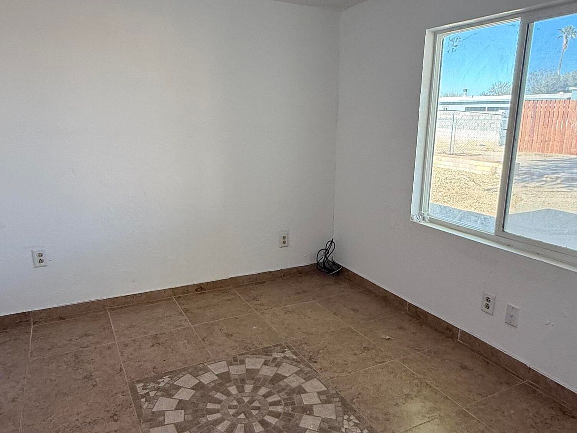 Permanently Affixed Manufactured Home with RV PARKING and HOOKUPS! Home fully framed and stucco finish. Spacious 3 bedroom/3 bath PLUS OFFICE! Large Kitchen with updated tile flooring. Brand new mini splits in each bedroom. The bright living room faces the fully gatedbackyard that boasts beautifully matured trees, decorative rock, paved deck and a detached structure that can be utilized as a workshop! The property offers lots of parking and space for all your desert toys. Plumbing and electric 2021, Roof 2024, Hot water heater 2024. Laundry/storage room.