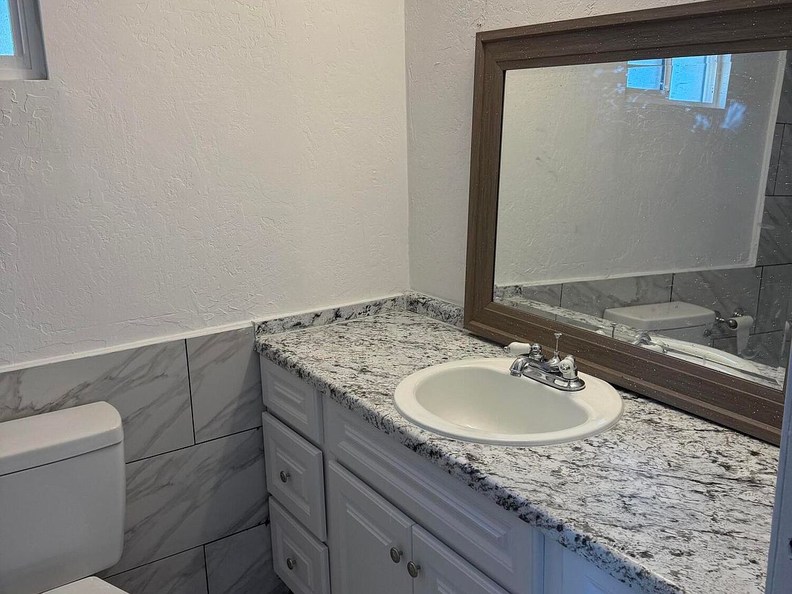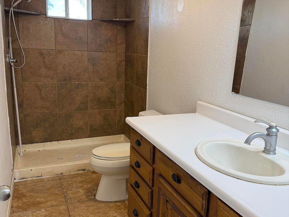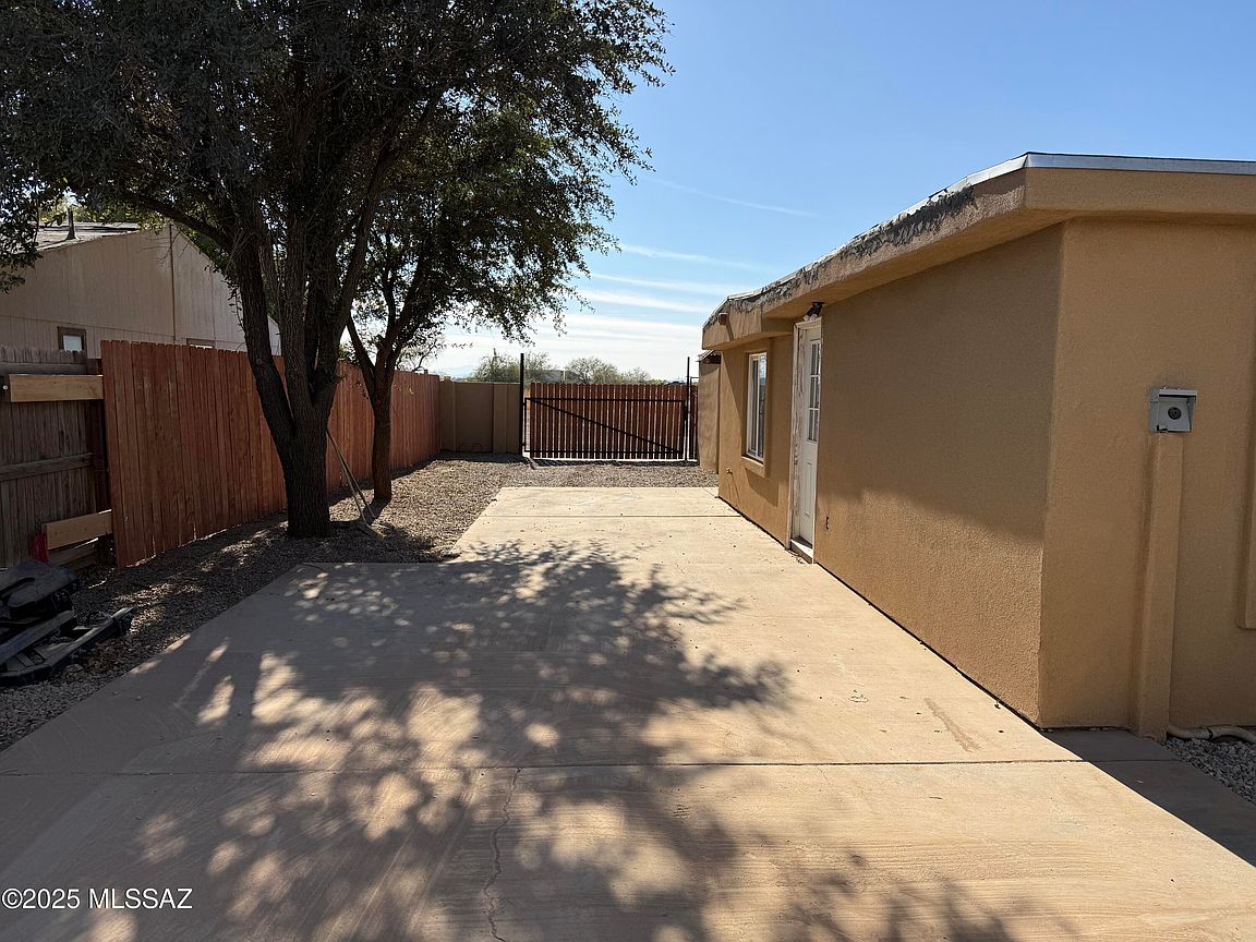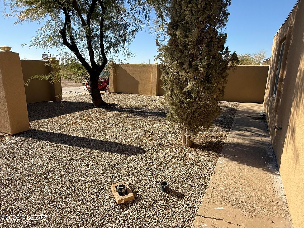 Permanently Affixed Manufactured Home with RV PARKING and HOOKUPS! Home fully framed and stucco finish. Spacious 3 bedroom/3 bath PLUS OFFICE! Large Kitchen with updated tile flooring. Brand new mini splits in each bedroom. The bright living room faces the fully gatedbackyard that boasts beautifully matured trees, decorative rock, paved deck and a detached structure that can be utilized as a workshop! The property offers lots of parking and space for all your desert toys. Plumbing and electric 2021, Roof 2024, Hot water heater 2024. Laundry/storage room.