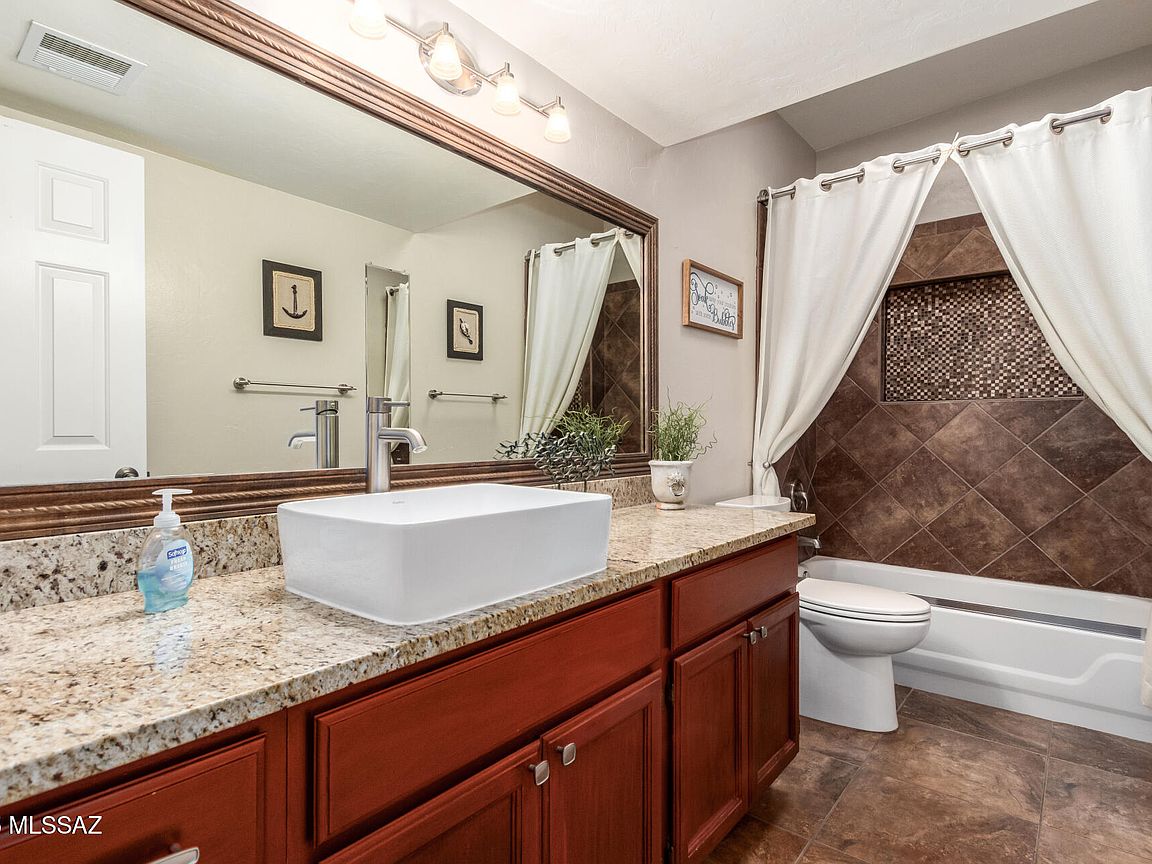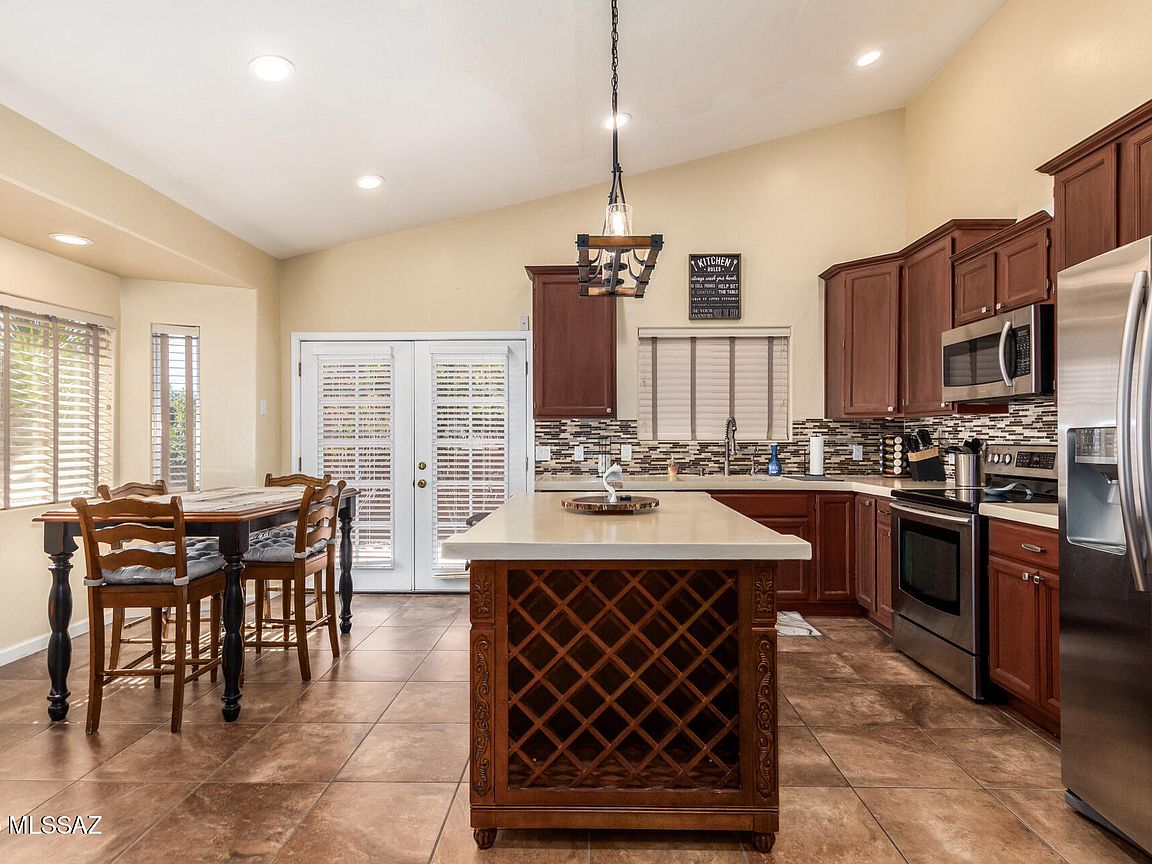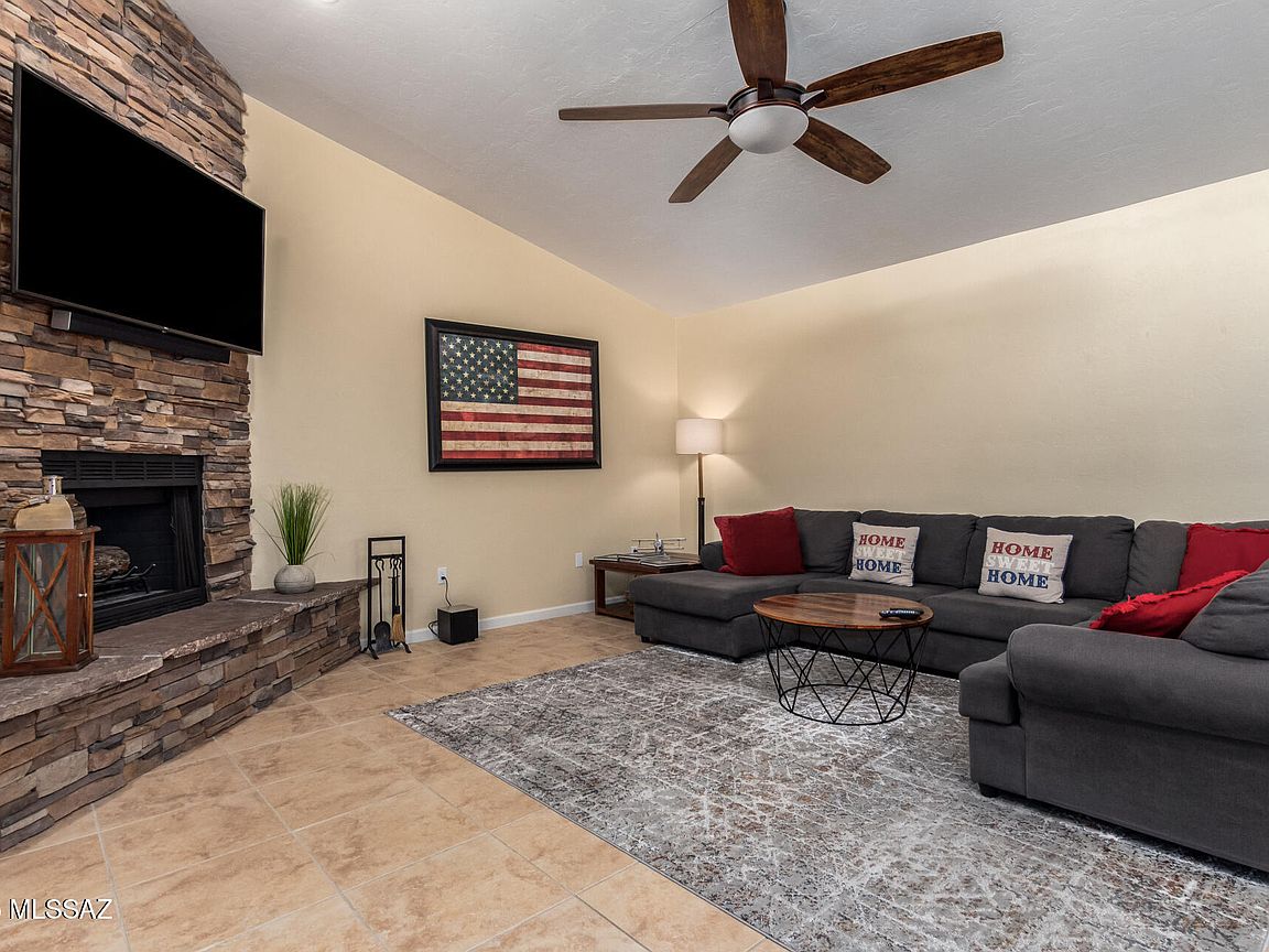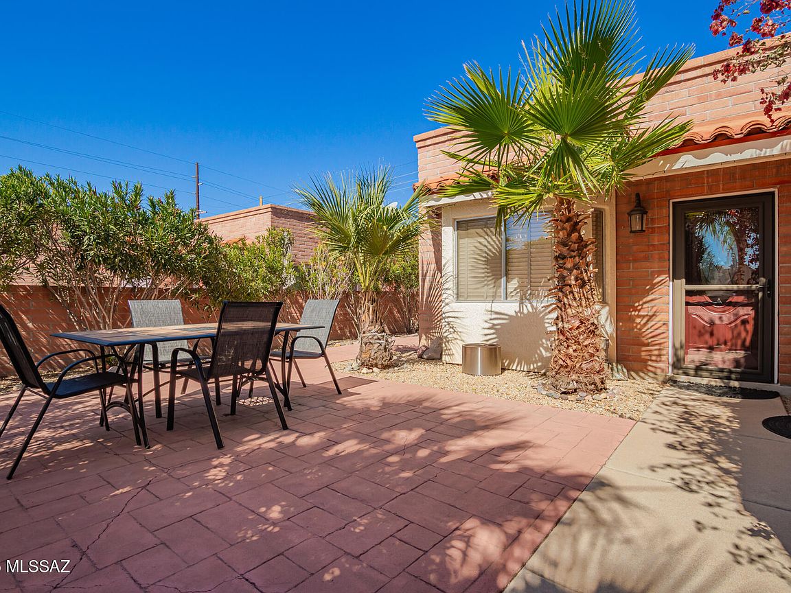 Home, sweet home! This lovely 3Br townhome in La Serena with a 2-car garage and welcoming front courtyard. You'll be delighted by the captivating great room with new tile flooring and vaulted ceilings, with clerestory windows for ample natural light & a stone-clad fireplace with flagstone hearth for intimate evenings. The gourmet kitchen comes with concrete counters, painted and stained wood cabinetry, a mosaic tile backsplash, SS appliances, center island, and a peninsula with a breakfast bar. The primary bedroom includes double French doors that lead to the backyard, a closet with mirrored doors and an ensuite with new shower and granite dual sinks. Spend quiet afternoons on the backyard with new brick patio and planter. Newer roof plus new AC & water heater. Come see inside today!