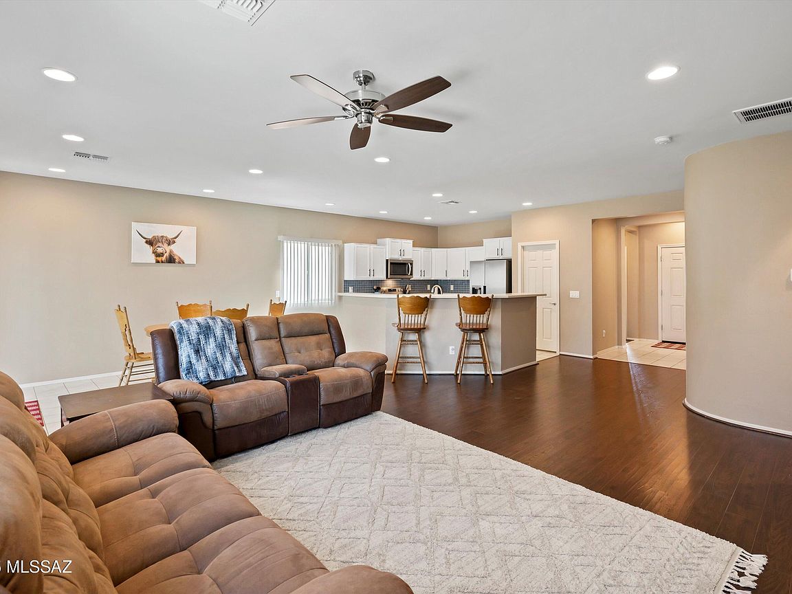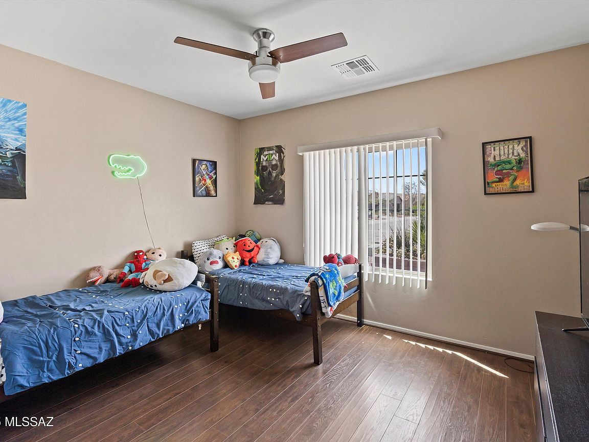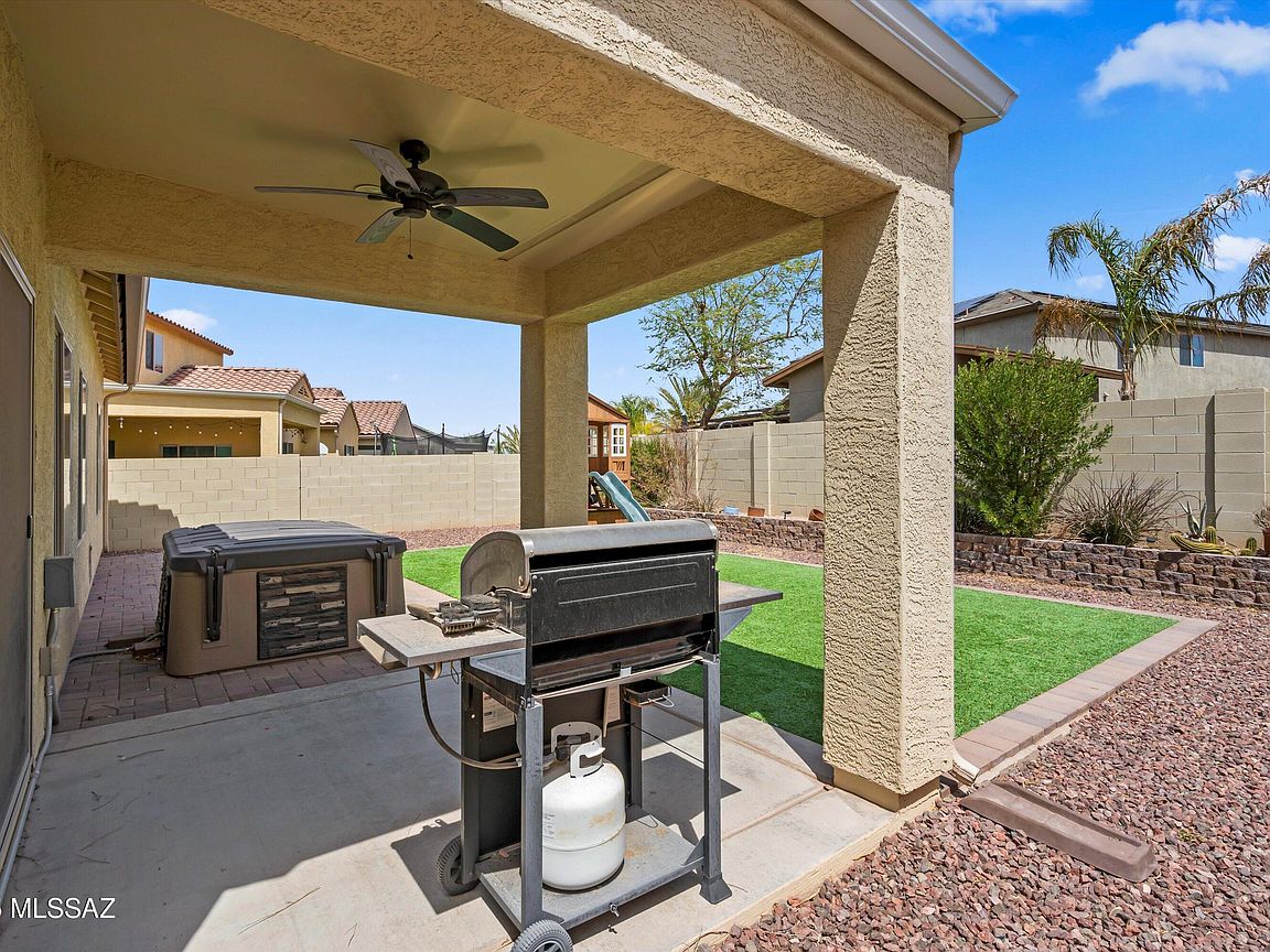 Welcome to this beautifully maintained 3-bedroom, 2-bathroom home in the vibrant, amenity-rich Red Rock Village community! With 1, 756 sq ft of living space, this home features an open-concept floor plan and a split-bedroom layout, offering both comfort and privacy. The spacious kitchen flows seamlessly into the living and dining areas, making it perfect for entertaining. The primary suite includes a walk-in closet and private en-suite bath. Step outside to a generously sized backyard with low-maintenance artificial turf--great for relaxing or outdoor fun. Enjoy access to incredible community amenities including two sparkling pools, basketball and volleyball courts, a baseball field, skate park, and multiple playgrounds throughout the neighborhood.