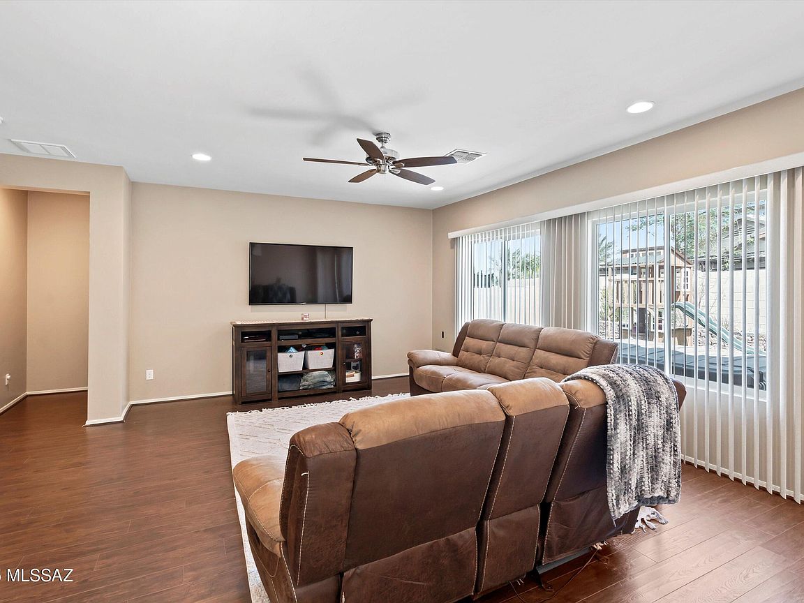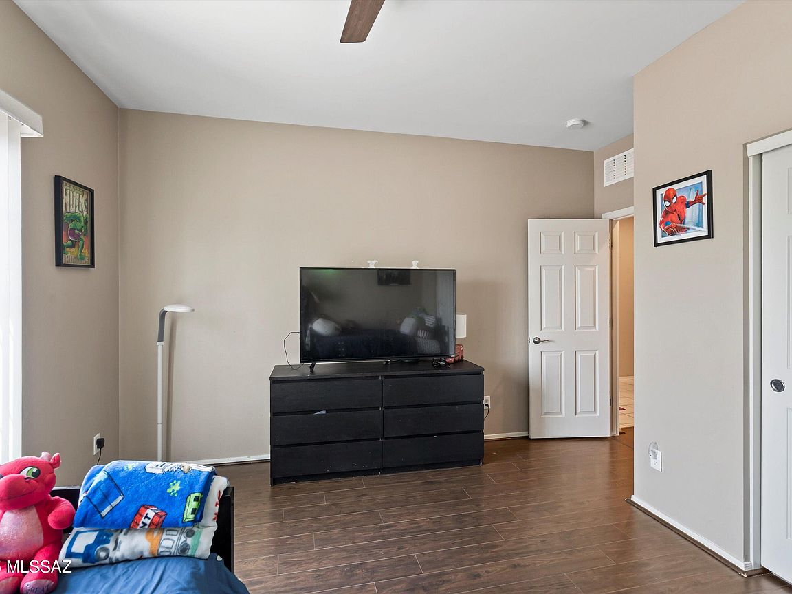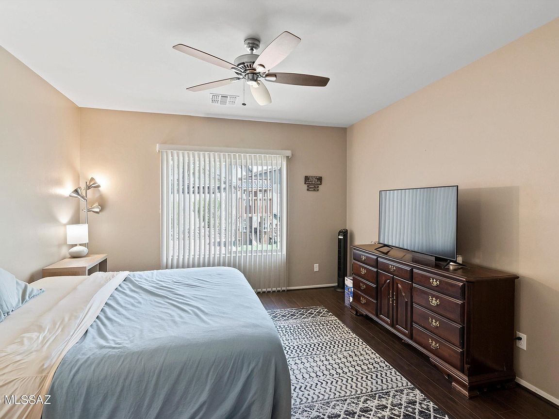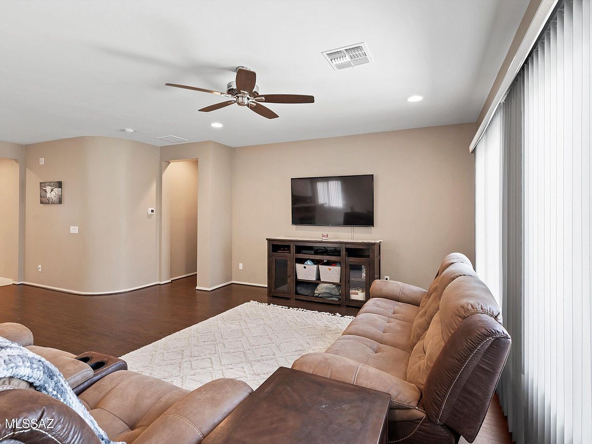 Welcome to this beautifully maintained 3-bedroom, 2-bathroom home in the vibrant, amenity-rich Red Rock Village community! With 1, 756 sq ft of living space, this home features an open-concept floor plan and a split-bedroom layout, offering both comfort and privacy. The spacious kitchen flows seamlessly into the living and dining areas, making it perfect for entertaining. The primary suite includes a walk-in closet and private en-suite bath. Step outside to a generously sized backyard with low-maintenance artificial turf--great for relaxing or outdoor fun. Enjoy access to incredible community amenities including two sparkling pools, basketball and volleyball courts, a baseball field, skate park, and multiple playgrounds throughout the neighborhood.