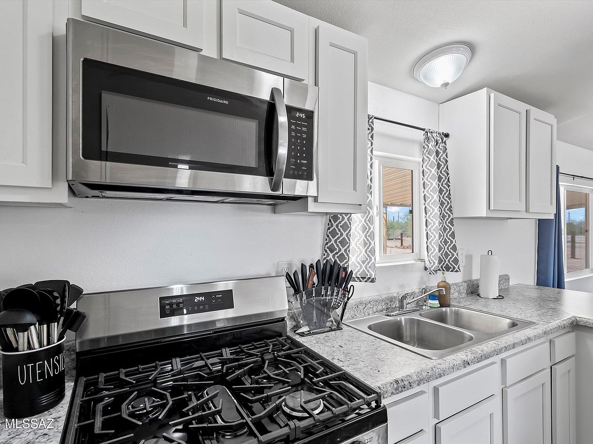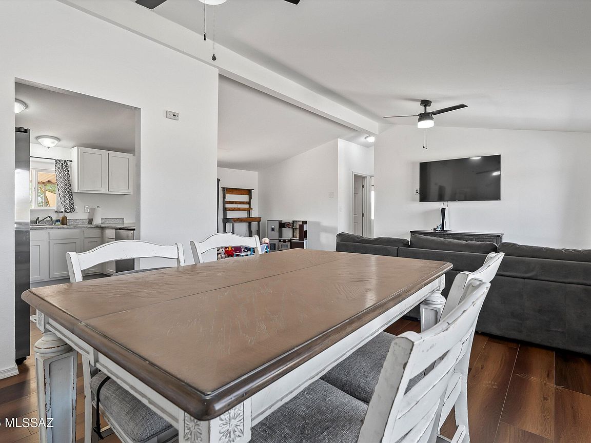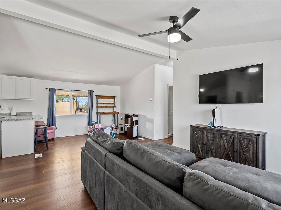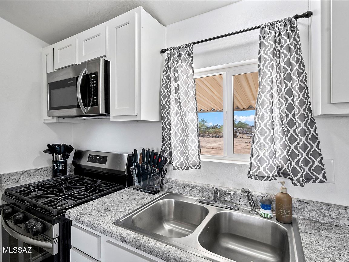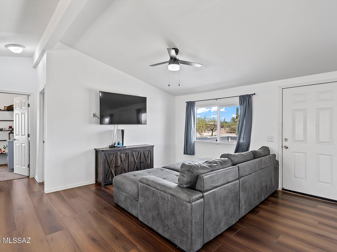A charming 3 bed, 2 bath mobile home is now on the market! Nestled on an oversized 1 acre lot w/mountain views, this is sure to be the place you've been looking for! Inside you will find a spacious great room featuring vaulted ceilings w/exposed beams, elegant wood-look flooring, and neutral palette throughout. The kitchen is equipped w/shaker cabinetry, ample counter space, stainless steel appliances, and a peninsula w/a breakfast bar. You'll love the primary bedroom, showcasing soft carpet and a private ensuite for added comfort. Also including a covered patio where you can sit back and enjoy a relaxing summer evening, this home is a true gem! Don't miss out!